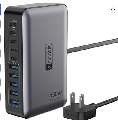 USB C Charger Block 10 Ports, 450W USB Charging Station for Multiple Devices, 5 Type C + 5 USB A GaN PD Charger Hub, Compact Power Brick Super Fast Charging for MacBook, Ipad, iPhone, Samsung